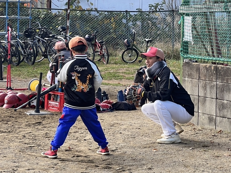 指導者の方からグローブの使い方、バットのふりかたなどを